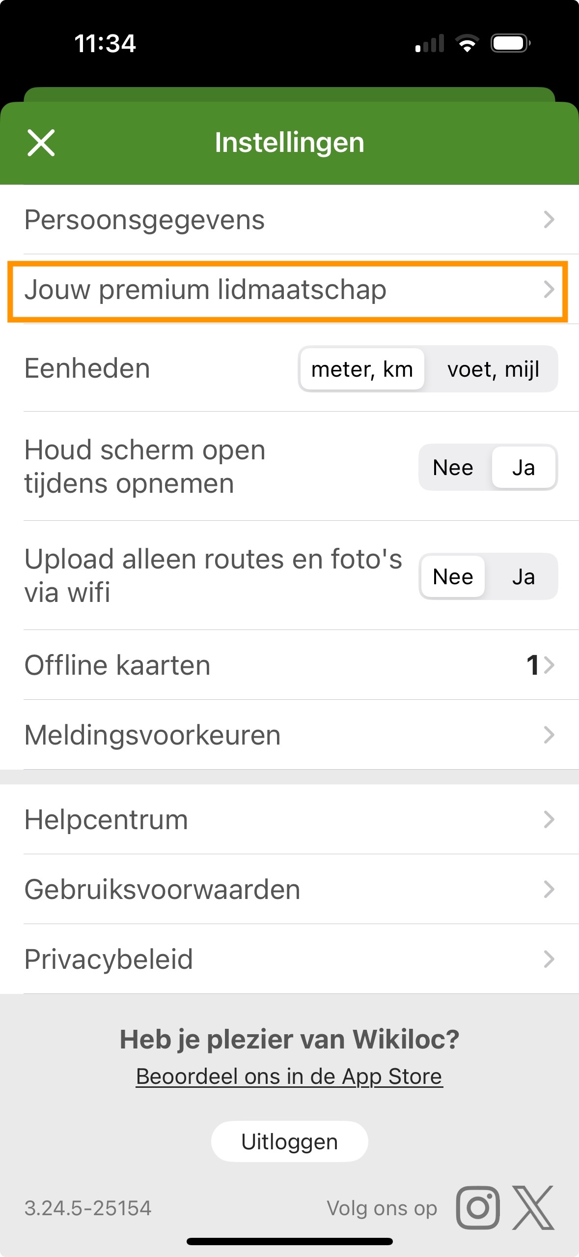 Activeer het vanuit de Wikiloc-app > Profiel > Instellingen (tandwielicoon) > Jouw premium lidmaatschap.