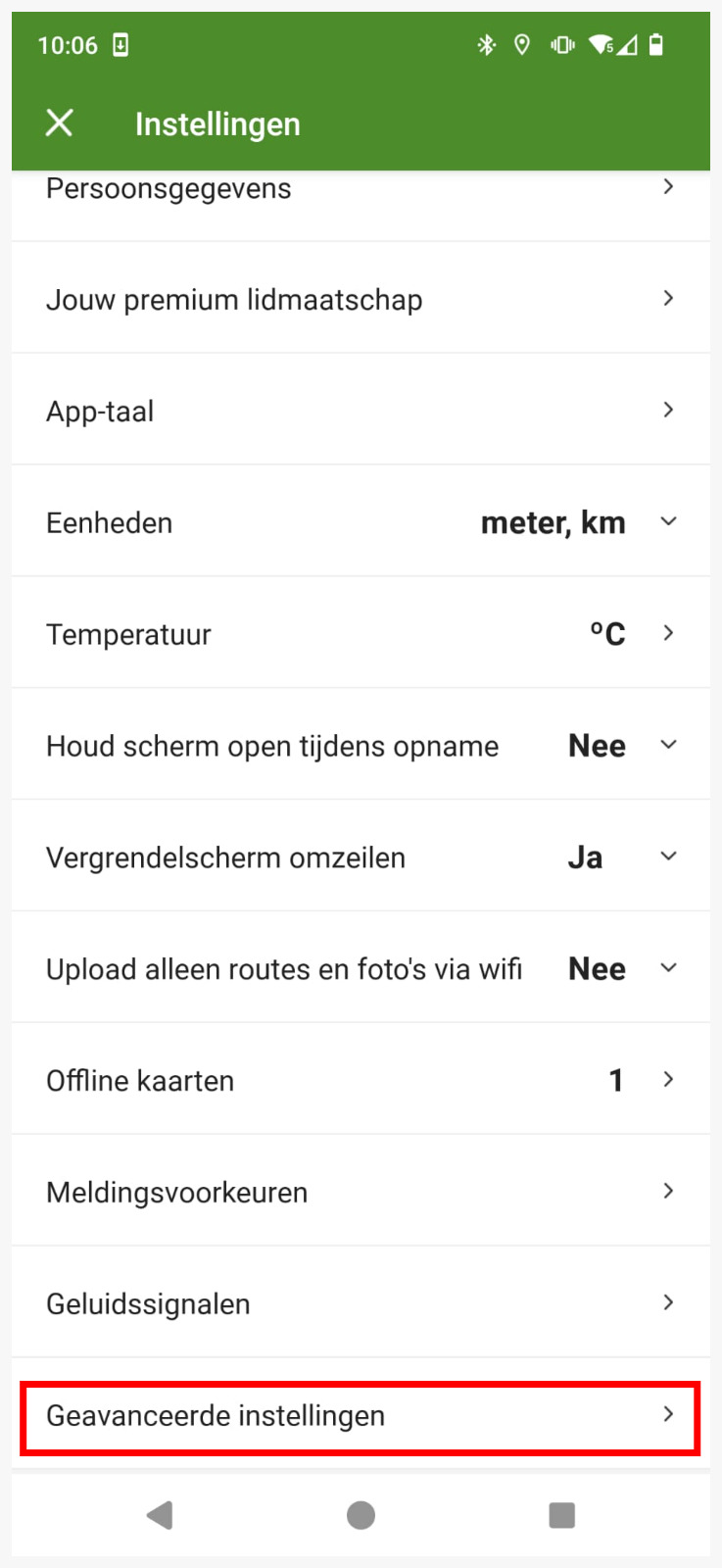 Maar als je problemen hebt met het opnemen van een route, probeer dan eens om deze uit te schakelen. Open de app en tik rechtsboven op het tandwiel voor Instellingen. Ga vervolgens naar Geavanceerde instellingen, tik op GPS-ruisfilter en kies Nee.