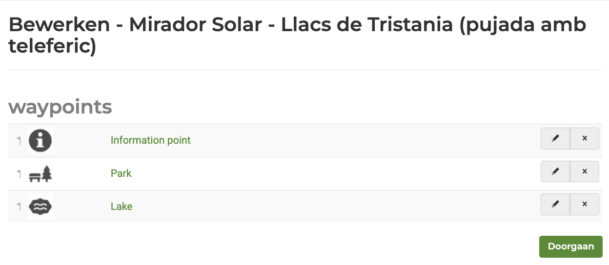 Hier kun je waypoints bewerken (via het potloodicoon) of verwijderen (via het X-icoon).