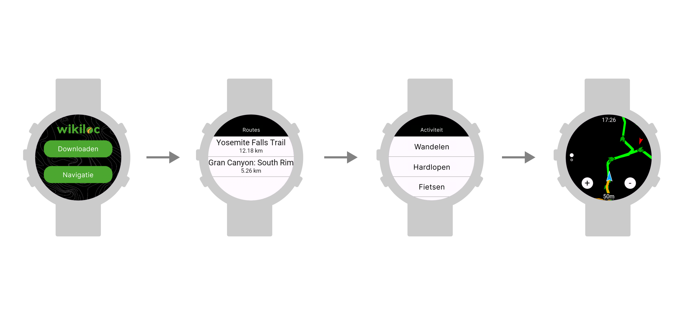 - De Wikiloc-app geïnstalleerd hebben op je Garmin: download via Garmin Connect IQ