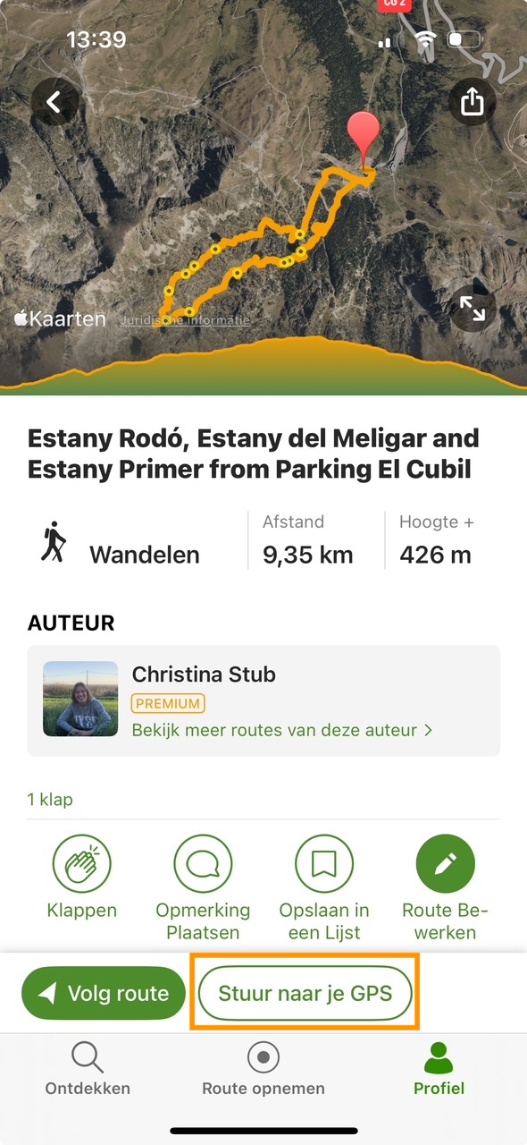 Routes van Wikiloc naar je GPS sturen (via de app)